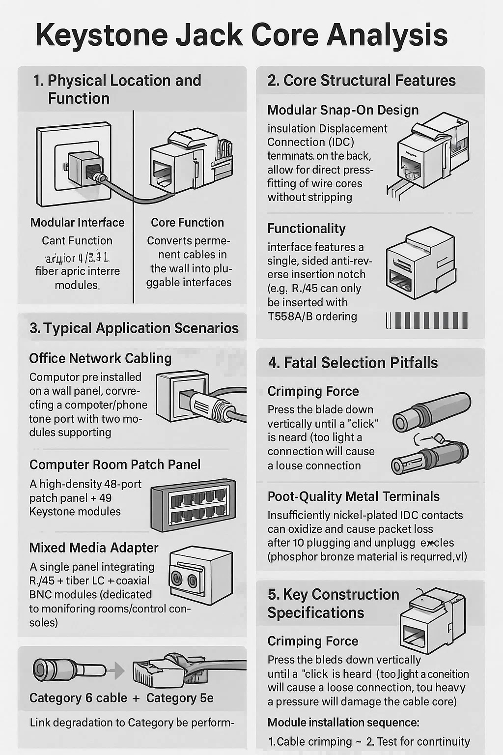 Pembawa antara muka modular: Pelabuhan persegi yang tertanam dalam panel panel/patch dinding, membawa modul antara muka RJ45, RJ11, atau serat optik, membolehkan sambungan antara peranti dan kabel rangkaian.