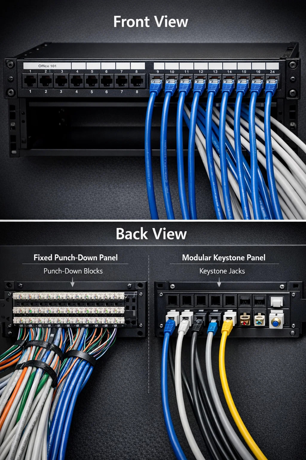 Dalam senario praktikal, seperti kabinet media rumah atau bilik pelayan perniagaan, a panel tampalan rangkaian tidak pernah duduk bersendirian. Penampilannya ditentukan oleh kabel yang disambungkan kepadanya.